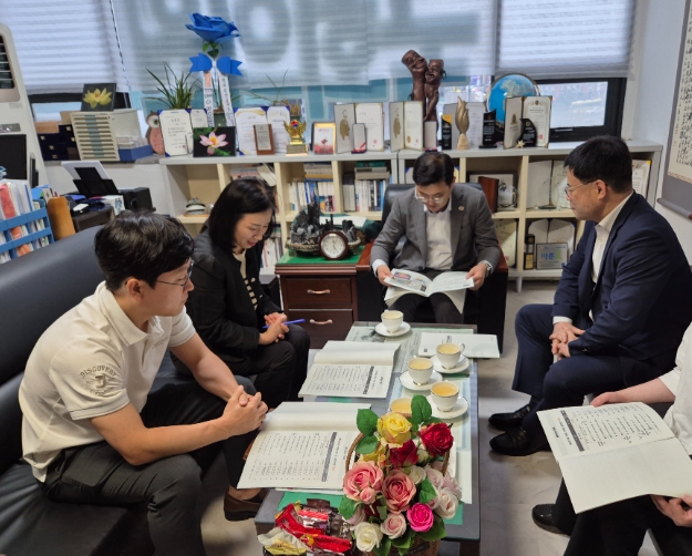 ▲ 17일 차명국 천안시 기획조정실장이 이정문 국회의원을 만나 지역 현안을 담은 ‘천안시와 대한민국 발전과제’ 건의문을 전달하며 국정과제 반영을 요청했다. |