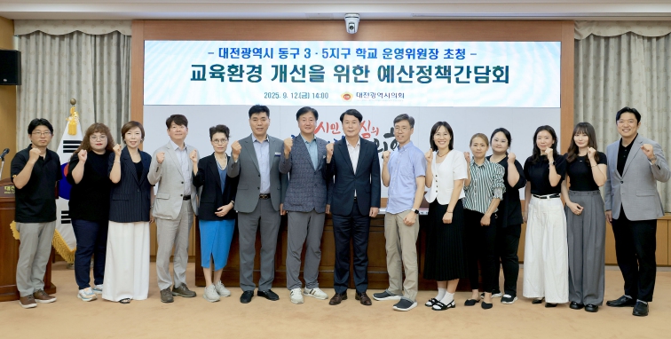 [뉴스스텝] 대전시의회 교육위원회는 12일 시의회 3층 소통실에서 동구 3·5지구 학교 운영위원장 초청 교육환경 개선을 위한 예산정책간담회를 개최했다. 이번 간담회는 이상래 의원(국민의힘, 동구2)이 주재해 지역 교육현장의 주요 요구를 청취하고, 2026년도 예산 편성 과정에 반영하기 위해 마련됐다.