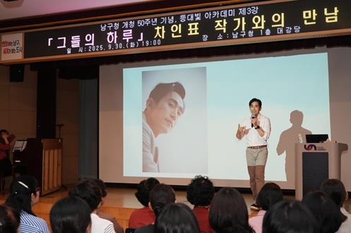 오은택 남구청장은 “개청 50주년을 맞이하여 특별히 기획한 이번 강연이 바쁜 일상에 지친 주민들에게 따뜻한 위로와 용기를 전하는 시간이 됐길 바란다”며 “앞으로도 구민과 함께할 수 있는 의미 있는 강연과 교육 프로그램을 지속적으로 마련하겠다”고 밝혔다.