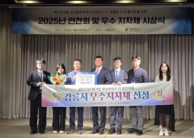 [뉴스스텝] 강릉시는 지난 6월 세계 환경의 날을 맞이하여 자원순환 및 재활용 활성화에 기여한 공로로 ‘환경보전 유공 국무총리 단체표창’을 수상하는데 이어, 23일 기후에너지환경부가 주최하는 '2025년 폐가전 무상수거처리 전국 지자체 경진대회'에서 ‘동상’을 수상하여 기후에너지환경부장관 단체표창을 받는 쾌거를 이뤘다.