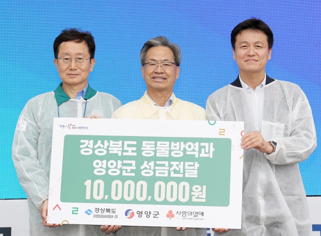 또한, 이날 가상방역훈련과 함께 경상북도는 농림축산식품부의 2025년 지자체 가축방역 평가에서 받은 포상금 1천만원 전액을 영양군 산불 피해 복구 성금으로 기부하는 전달식도 가졌다.