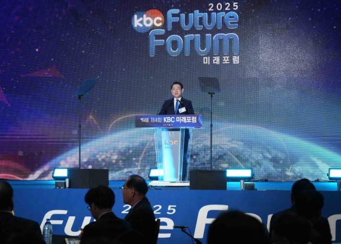 ▲ 김영록 전라남도지사가 26일 여수 소노캄호텔에서 열린 ‘제4회 KBC미래포럼’ 행사에서 인사말을 하고 있다.