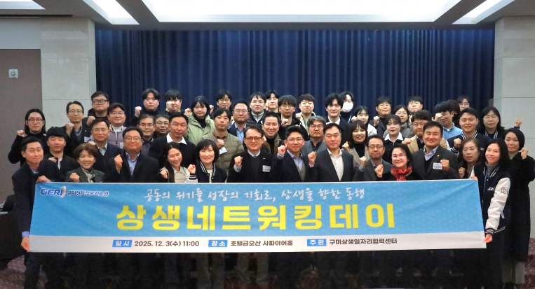 [뉴스스텝] 구미상생일자리협력센터(센터장 유경숙)는 12월 3일 호텔 금오산 사파이어홀에서 ‘25년 센터 지원사업 참여기업 및 이차전지 기업 협력 협의회 회원사 대표, 임직원 등 100명이 참석한 가운데‘상생네트워킹데이’를 개최했다.