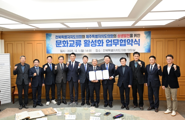 문승우 전북특별자치도의회 의장 역시 “제주와의 문화·관광 협력 확대는 지역 브랜드 가치 제고에 큰 도움이 될 것”이라며 세계유산 연계 사업과 지역 문화·예술 분야의 구체적 교류 프로그램을 적극 발굴하겠다는 의지를 밝혔다.