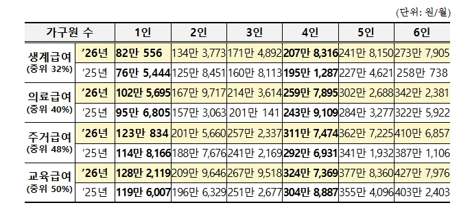 2026년 기준 중위소득 인상 및 제도개선을 통해 약 4만 명이 새롭게 생계급여를 수급할 수 있을 것으로 기대된다.