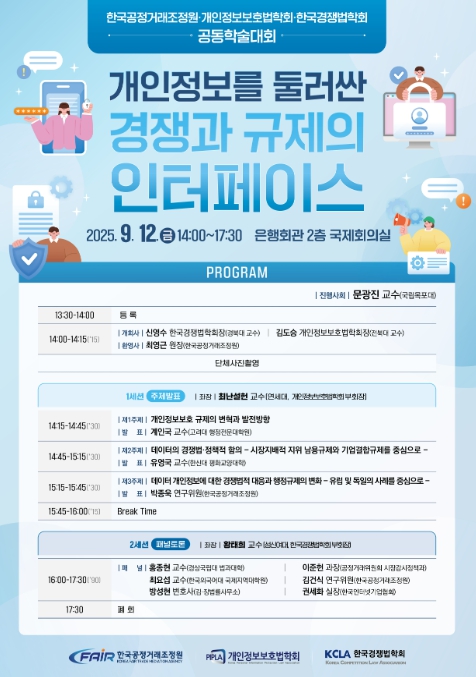 [뉴스스텝] 공정거래위원회 한국공정거래조정원은 한국경쟁법학회, 개인정보보호법학회와 함께 ‘개인정보를 둘러싼 경쟁과 규제의 인터페이스’를 주제로 공동 학술대회를 개최했다.