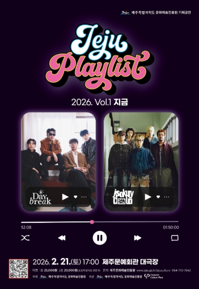 [뉴스스텝] 제주특별자치도 문화예술진흥원은 2026년 신년을 맞아 젊은 세대가 선호하는 뮤지션을 초청한 기획공연 ‘JEJU PLAYLIST 2026 VOL.1 지금’을 오는 2월 21일 오후 5시 문예회관 대극장에서 개최한다고 밝혔다.