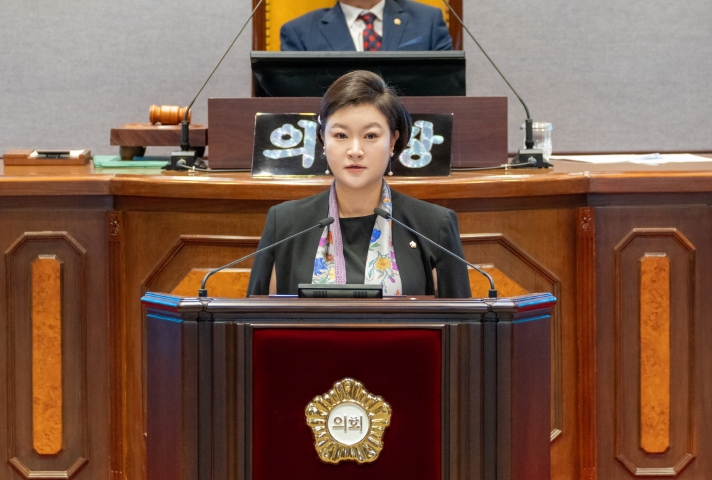 ▲ 김현정 강남구의회 복지문화위원장이 제330회 임시회 제2차 본회의에서 5분 자유발언을 하고 있다. |