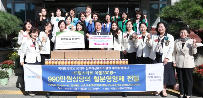 [뉴스스텝] 청주시 국제로타리3740지구 소속 9개 여성로타리클럽은 17일 청주시청을 찾아 성장기인 취약계층 아동(드림스타트)을 위해 영양제를 기탁했다.