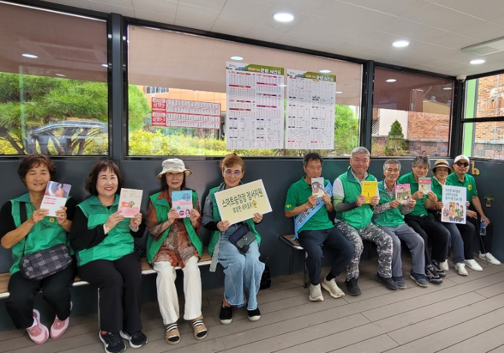 [뉴스스텝] 효령면 새마을회가 버스를 기다리는 주민들을 위해 스마트승강장 내 책꽂이에 도서를 기증하며 따뜻한 정서지원 활동을 이어가고 있다.