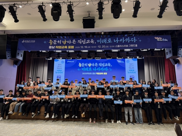 [뉴스스텝] 충남교육청은 12월 19일부터 20일까지 예산 스플라스 리솜에서 학생 60명, 교사 380명이 참여한 가운데‘2025학년도 충남 직업교육 포럼’을 개최한다.