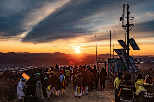 | ▲ 1일 밀양시 종남산에서 열린 병오년 해맞이 행사에 참여한 시민들이 떠오르는 해를 바라보고 있다. |