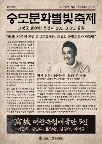 [뉴스스텝] 평화 경제 거점도시 강원 고성군은 오는 8월 14일 오후 6시, 토성면 운봉리 숭모공원 일원에서 ‘2025 숭모문화 별빛축제–동해안 최초 만세운동의 길’을 개최한다.