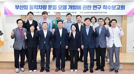 [뉴스스텝] 부산광역시의회 의원연구단체 ‘구절초’는 7월 9일 오후 2시, 의원회관 지하 1층에서 『부산형 통학차량 운영 모델 개발에 관한 연구』 착수보고회를 개최하며 본격적인 정책연구에 들어갔다.