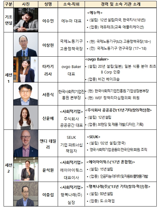 | ▲ 2025 사회적기업 국제포럼 연사 소개 |