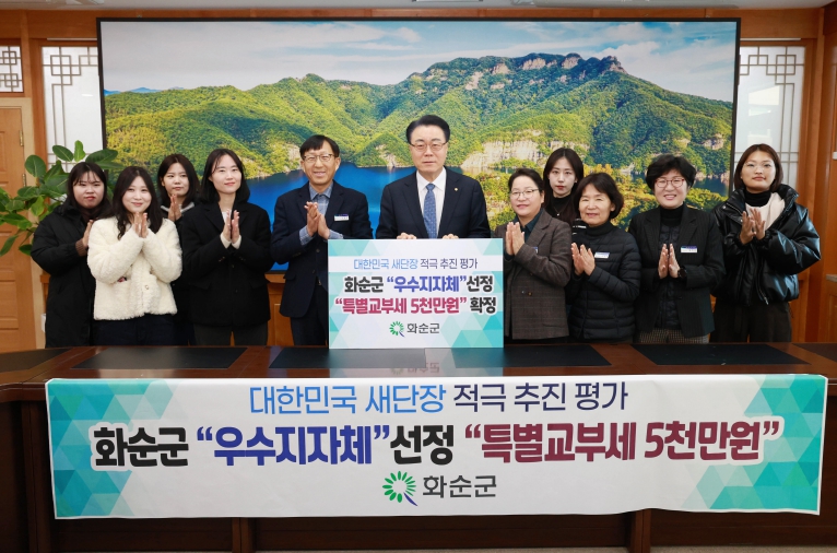[뉴스스텝] 화순군은 지난 24일 행정안전부가 주관한 ‘대한민국 새단장’ 캠페인 추진실적 평가에서 우수 지자체로 선정돼 특별교부세 5천만 원을 확보했다고 밝혔다.