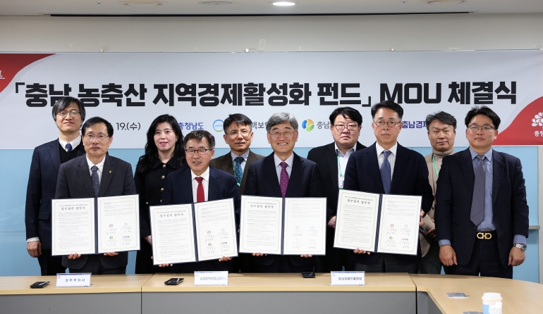 [뉴스스텝] 충남도는 19일 도청에서 농업정책보험금융원, 충남테크노파크, 충남경제진흥원과 ‘충남 농축산 지역경제 활성화 펀드’ 업무협약(MOU)을 체결했다.