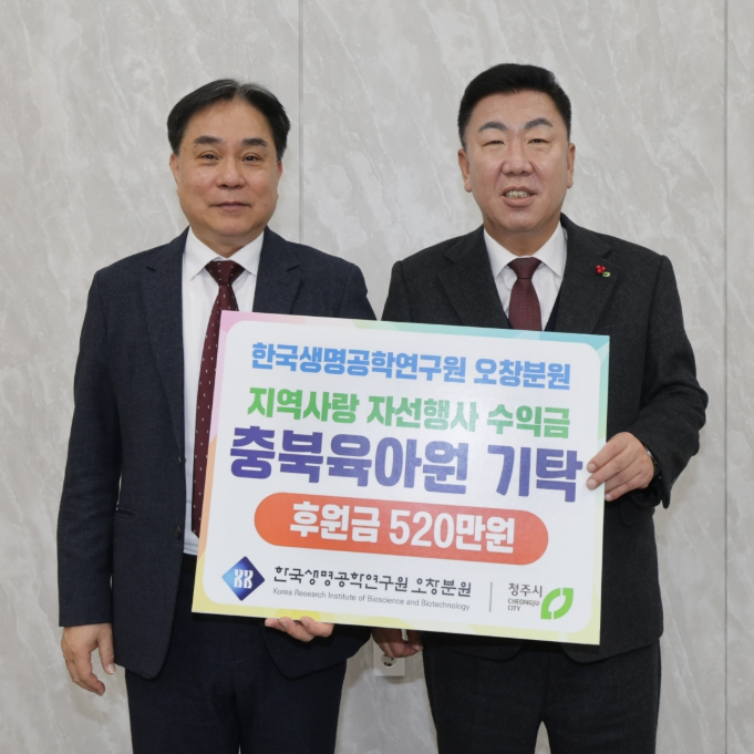 [뉴스스텝] 한국생명공학연구원 오창분원은 30일 청주지역 아동양육시설 보호아동을 위해 사용해 달라며 청주시에 자선행사 수익금 520만원을 기탁했다.