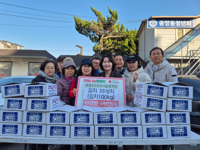최춘희 중방동장은 “손수 농작물 재배부터 김장까지 정성과 수고가 많이 들었을 텐데, 이렇게 따뜻한 마음을 모아 기부해 주셔서 감사드린다”며 “기부자의 마음이 잘 전달될 수 있도록 필요한 가구에 신속히 배부하겠다”고 전했다.