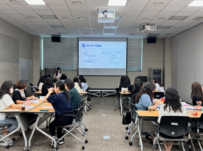 | ▲ 지역센터를 대상으로 ‘저비용 고효율 맞춤형 취학아동 위생교육’ 운영사례 멘토링 모습 |