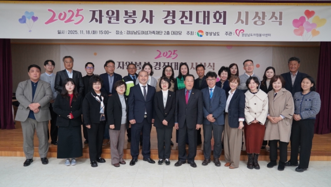 [뉴스스텝] 경상남도는 18일 경남여성가족재단 대강당에서 ‘2025 자원봉사 경진대회 시상식’에서 지역사회 자원봉사 활성화에 기여한 29개 팀에 도지사상을 수여했다고 밝혔다.