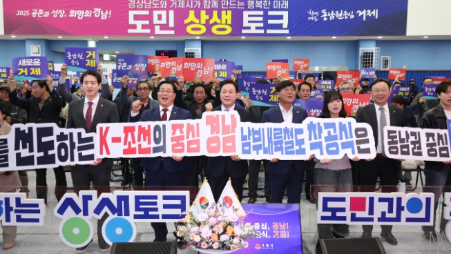 [뉴스스텝] 경상남도는 18일 거제 반다비체육센터에서 열린 ‘도민 상생토크’에서 기업혁신파크, 광역교통망, 미래산업 등을 연계한 성장전략을 제시하며 지원 의지를 밝혔다.