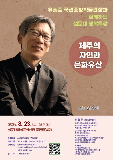 제주특별자치도 설문대여성문화센터는 23일 오후 2시 센터 공연장에서 ‘유홍준 국립중앙박물관장 초청 설문대 행복특강’을 개최한다.