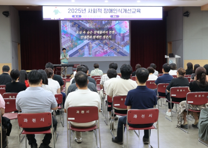 [뉴스스텝] 과천시는 29일 시청 대강당에서 전 직원을 대상으로 ‘장애 인식개선 교육’을 실시했다고 밝혔다. 이번 교육은 장애에 대한 편견과 차별을 없애고, 장애인과 비장애인이 함께 어우러지는 통합사회를 만들기 위해 마련됐다.