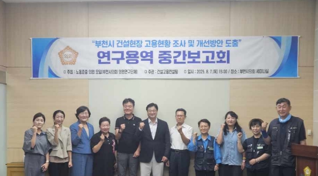 [뉴스스텝] 부천시의회 의원연구단체인 ‘노동존중 의원모임’은 지난 7일 부천시 건설현장 고용현황 조사 및 개선방안 도출 연구용역에 대한 중간보고회를 개최했다.