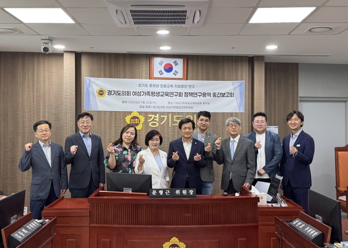 [뉴스스텝] 경기도의회 여성가족평생교육연구회(회장 문형근, 여성가족평생교육위원장)는 7월 23일 오후 2시 30분, 경기도의회 여성가족평생교육위원회 회의실에서 '경기도 중장년 진로교육 지원방안 연구' 중간보고회를 개최했다.