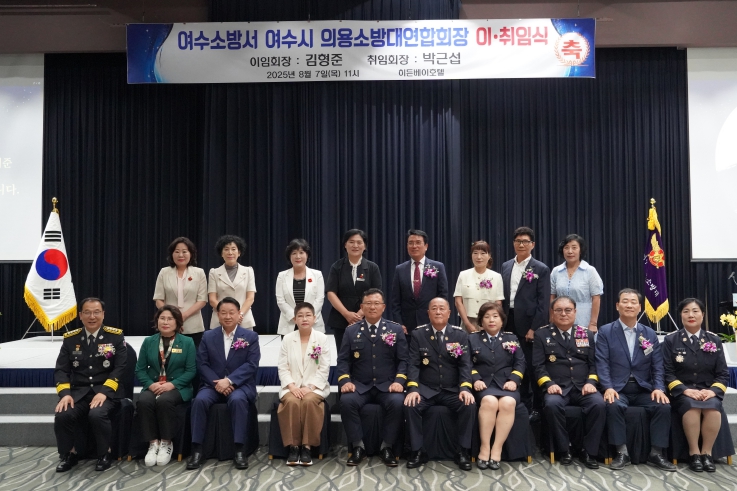 [뉴스스텝] 여수소방서는 2025년 8월 7일 오전 11시, 여수 히든베이 호텔에서 여수시 의용소방대 연합회장 이·취임식을 성황리에 개최했다고 밝혔다.