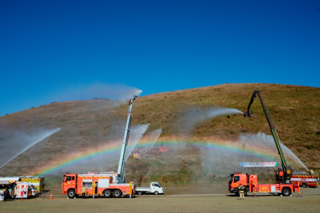 산불대응 훈련과 함께 전국의용소방대 연합회와 애월읍 주민, 새별오름 등산객을 대상으로 산불예방 수칙 안내 및 불법소각 근절 홍보 등 산불예방 캠페인도 병행했다.