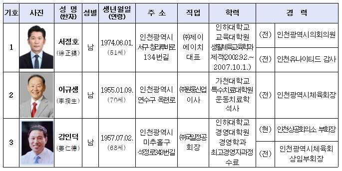 ▲ 인천광역시체육회장재선거 후보자 등록상황 |