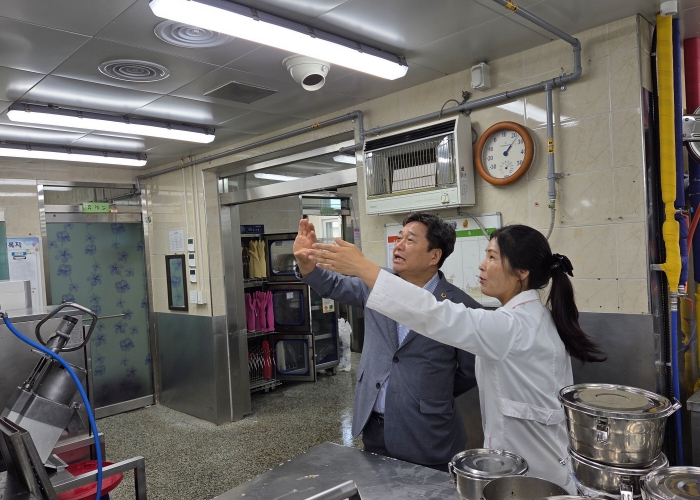 [뉴스스텝] 경기도의회 교육기획위원회 김호겸 의원(국민의힘, 수원5)은 지난 9월 16일 광주시 남한산성면 소재 번천초등학교(교장 오재선)를 방문하여 학교 급식실 환기설비 개선 현황을 점검했다.