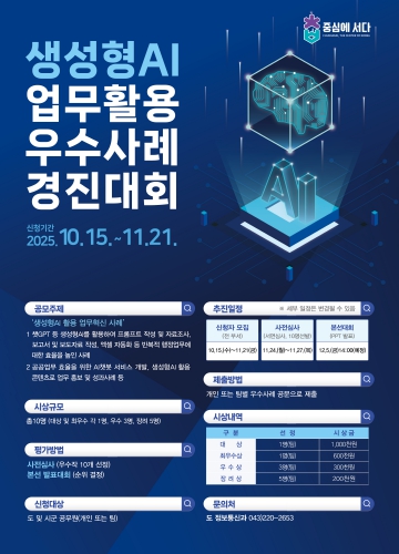 한편, 충북도는 그동안 RPA(업무프로세스자동화) 도입, 생성형 인공지능(AI) 구독료 지원, 직원 대상 교육 등을 통해 적극적인 행정 혁신을 추진해 왔다”고 말했다.
