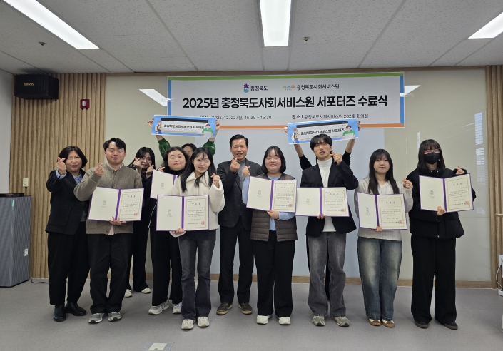 [뉴스스텝] 충청북도사회서비스원(이장희 원장)은 12월 22일 오후 3시 30분, 충청북도사회서비스원 회의실에서 2025년 서포터즈 수료식을 개최했다.