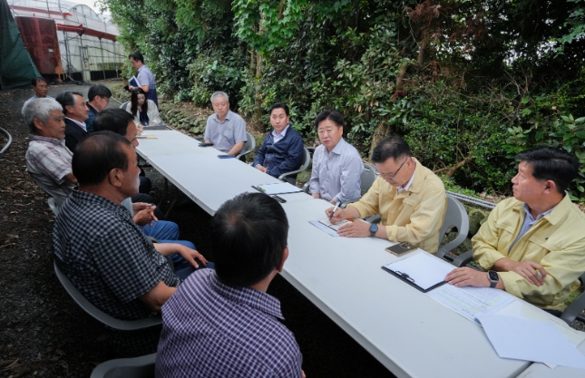 오영훈 지사는 현장에서 농가들의 어려움을 직접 확인하며 적극적인 지원 의지를 밝혔다.