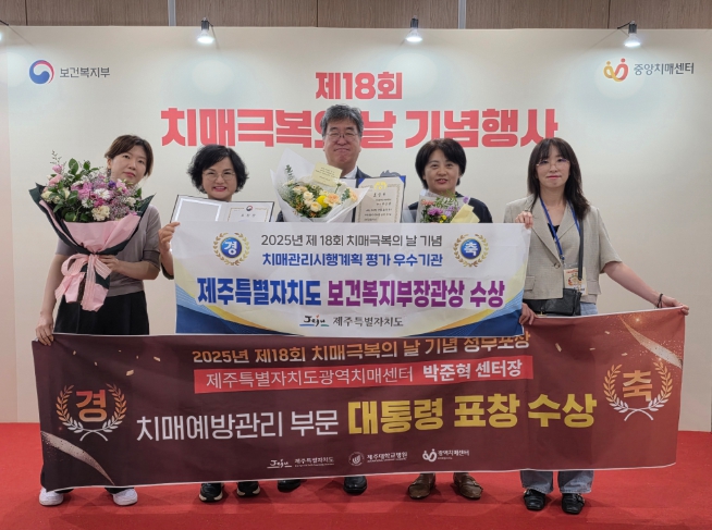 제주도는 2024년 치매관리시행계획 시행결과 및 2025년 치매관리 시행계획 평가에서 우수기관으로 선정돼 보건복지부장관상을 수상했다.