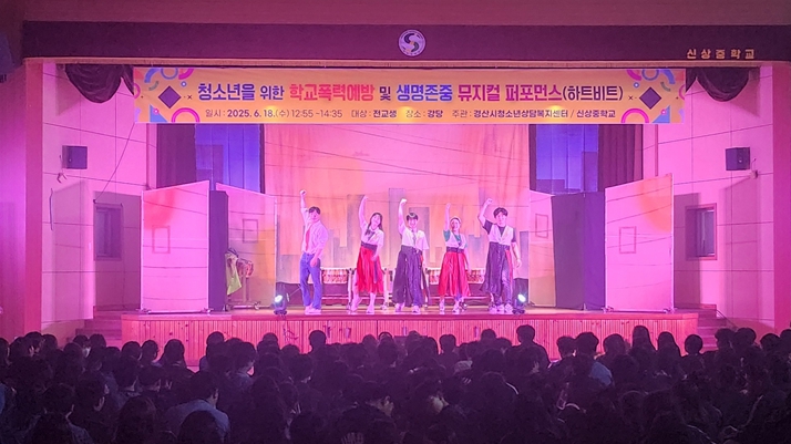 [뉴스스텝] 경산시청소년상담복지센터(센터장 정성희)는 지난 5월부터 7월까지 3개월 동안 관내 11개교(초등학교 4, 중학교 6, 고등학교 1)에서 3,600여 명의 학생을 대상으로 실시한‘학교로 찾아가는 공연 교육’을 성황리에 마무리했다.