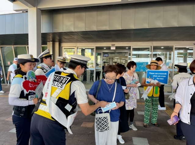 [뉴스스텝] 서귀포시와 서귀포경찰서, 자치경찰단서귀포지역경찰대 합동으로 지난 7월 23일 강정항 크루즈터미널 일원에서 관광객과 관광업체, 택시 등을 대상으로 교통법규 및 기초 질서 준수 의식 고취를 위한 '유관기관 합동 안전문화운동 캠페인'을 개최했다.