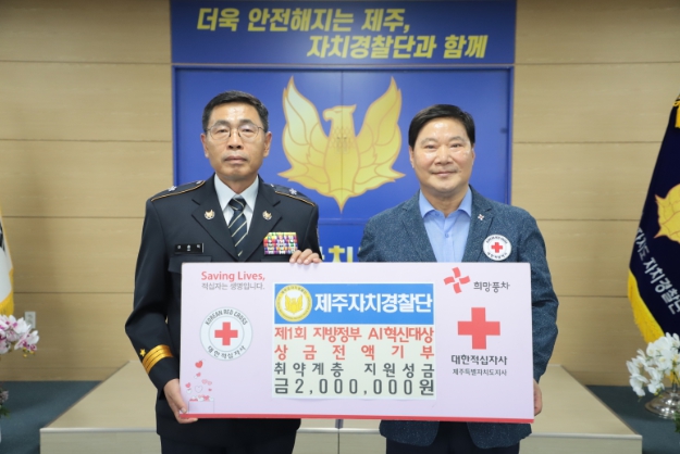 [뉴스스텝] 제주특별자치도 자치경찰단(단장 오충익)이 ‘제1회 지방정부 인공지능(AI) 혁신대상’에서 수상한 상금 200만원 전액을 대한적십자사 제주특별자치도지사에 기부했다.