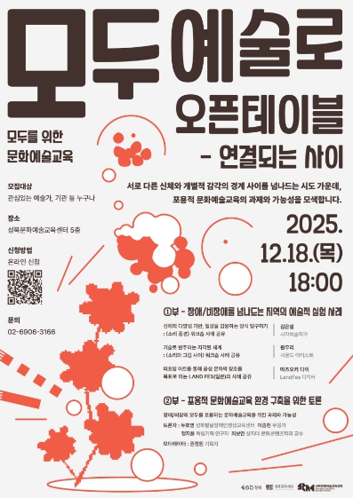성북문화예술교육센터 관계자는 “이번 오픈 테이블은 장애 유무를 떠나 서로의 감각과 경험이 다양한 예술의 방식으로 소통하고 연결되는 지점을 탐색하는 자리”라며 “앞으로도 누구나 참여할 수 있는 포용적 문화예술교육 환경을 조성하기 위해 논의와 실천을 지속해 나가겠다”고 말했다.