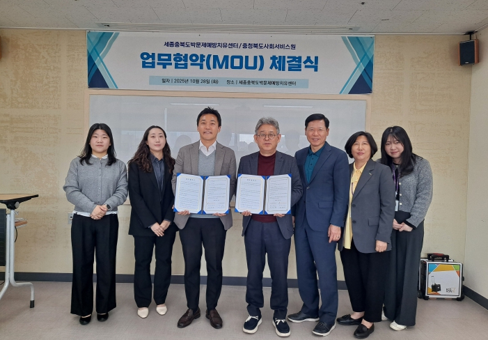 [뉴스스텝] 충청북도사회서비스원(원장 이장희)과 세종충북도박문제예방치유센터(센터장 김경진)는 2025년 10월 28일 오전 11시, 세종충북도박문제예방치유센터 회의실에서 도민의 정신건강 증진 및 삶의 질 향상과 사회서비스 협력체계 강화를 위한 업무협약(MOU)을 체결했다.
