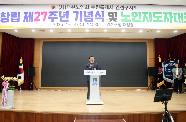 [뉴스스텝] 수원특례시의회는 3일 권선구청 대회의실에서 열린‘대한노인회 수원시 권선지구 제27주년 기념식 및 노인지도자대회’에 참석해 어르신 지도자들의 노고를 축하하고 격려했다.