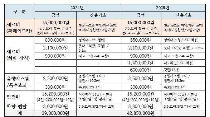 | ▲ 탐라문화제 퍼레이드 덕판배 예산 지출 현황 |