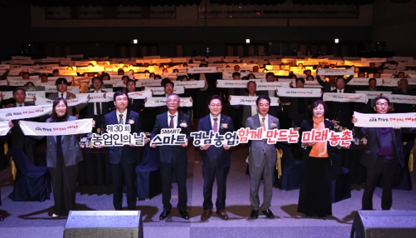 이날 기념식은 ‘스마트 경남농업, 함께 만드는 미래농촌’을 슬로건으로 열렸으며, 최학범 도의회 의장, 백수명 농해양수산위원장과 위원, 안병화 경남농어업인단체연합회장, 류길년 농협중앙회 경남본부장, 농업인과 가족, 외국인 주민 등 400여 명이 참석했다.