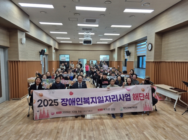 [뉴스스텝] 옥천군장애인복지관이 3일 일자리 참여자의 한 해 동안의 노고를 격려하고 근로 의욕을 높이기 위해 ‘2025년도 장애인복지일자리사업 해단식’을 개최했다.