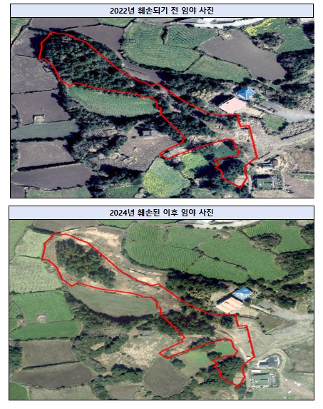 형청도 자치경찰단 수사과장은 “훼손된 산림은 원상회복이 불가능하거나 복구에 상당한 시일이 걸린다”며 “산림훼손 및 환경훼손 사범에 대해서는 구속수사를 원칙으로 엄중 대응할 방침”이라고 밝혔다.
