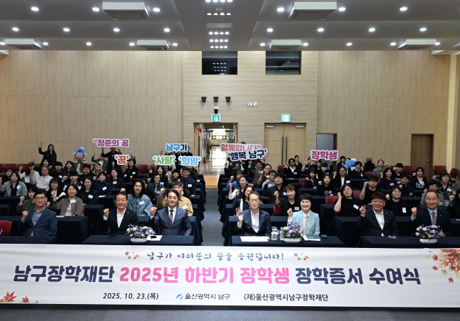 [뉴스스텝] 재단법인 울산광역시남구장학재단(이사장 서동욱 남구청장)은 23일 남구청 6층에서 ‘2025년 하반기 장학증서 수여식’을 개최했다.