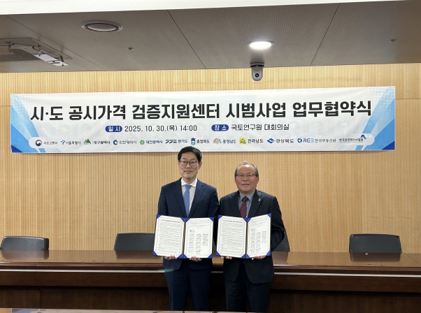 이번 업무협약은'부동산 공시제도 개선방안'의 후속조치 중 하나인 ‘시ㆍ도 공시가격 검증지원센터’를 제도화하기 위한 준비과정으로, 그간 국토교통부는 정책연구용역 등을 통해 시ㆍ도 공시가격 검증지원센터 운영매뉴얼(안)을 마련하고, 이를 서울ㆍ경기ㆍ충남 지역에 시범 적용(’24.9~’25.9)한 바 있다.